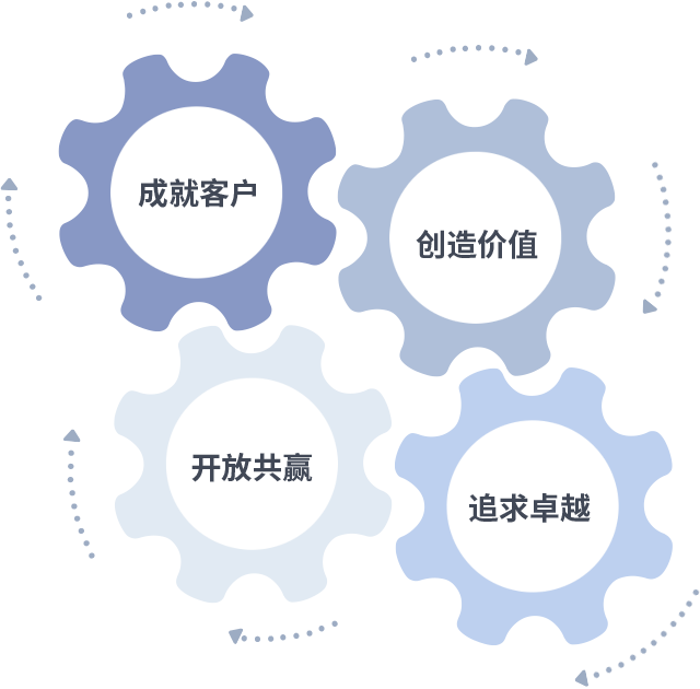 成就客户是一切决策的出发点,创造价值是衡量所有工作的标准,追求卓越是PA真人做事做人的态度,开放共赢是PA真人的格局也是最终的结果。价值观的齿轮环环相扣,推动着组织里的每个人不断向前。